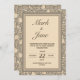 É um convite de casamento desenhado exclusivamente com padrões de flores e folhas. Ele também apresenta um layout tipográfico moderno com fontes elegantes. O verso fornece um elemento artístico com o design de padrão inteiro.