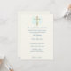 Convites lindos para o seu casamento que são personalizáveis. Este design floral apresenta uma cruz simples e um lindo spray de flores contra um fundo de céu azul. Perfeito para casais que colocam Jesus no centro do seu casamento.