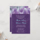 Este design com pétalas de flores dália aqua e roxas espreitando por detrás de um fundo damasco sutilmente texturizado de roxo real rico torna um convite de casamento elegante, e está atualmente apresentado em um papel metálico de tonalidade gelo premium que dá ao seu convite um brilho e um esplendor extra-especiais. Você pode experimentar diferentes tipos de papel para obter exatamente o visual desejado.
