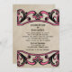 O convite para casamentos de galerias elegantes e góticas góticas, apresentando um fundo bege texturizado vintage e bordas rosas florescem em magenta. Este design de aparência antiga é perfeito para um gótico ou casamento vintage. Fácil de personalizar, basta adicionar os detalhes do casamento nos campos de texto fornecidos. Clique em "Personalizar" para encontrar mais opções de personalização.