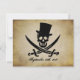 Um clássico Jolly Roger, com chapéu alto opcional, em um fundo com aparência de grunge antigo e espaço para todos os detalhes do seu convite em linguagem pirata!