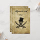 Um clássico Jolly Roger, com chapéu alto opcional, e espadas cruzadas de Rackham em um papel decorado antigo com um visual desgastado e espaço para todos os detalhes do seu convite personalizado em linguagem pirata!