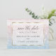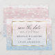 Salvar a Data | Deslumbrantes águas do oceano cintilantes e brilhantes reluzindo ao pôr do sol - em tons pálidos de rosa poeira e azul poeira - o texto aparece em uma moldura branca translúcida com borda dourada cintilante que mostra o design, mas permite que o texto seja facilmente lido. Acentuado com caligrafia elegante e manuscrita. Modelo de casamento fácil de personalizar.
