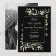 Com folhas delicadas pintadas à mão num fundo preto chic. Este convite de casamento botânico chic pode ser personalizado com a sua foto e detalhes do grande dia em texto elegante. Desenhado por Thisisnotme©