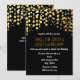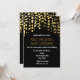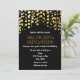 Convite de Casamento Preto com Pontos de Confete em Folha de Ouro. Personalize a frente e verso para qualquer evento.