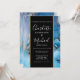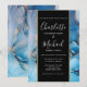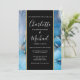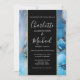 Convite de casamento elegante com nomes em estilo de assinatura, este convite de casamento elegante pode ser personalizado com suas informações em letras elegantes em uma faixa preta e dourada e fundo de ágata azul. Criado por Thisisnotme©