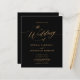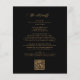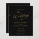 Orçamento Tudo em Um Detalhes sobre o Convite para Casamento Negro de Caligrafia Dourada... Nosso convite exclusivo para barato duplo e casamento preto contém um roteiro de caligrafia dourada combinado com texto sans serif para um simples convite clássico e elegante de casamento. A parte de trás do convite contém todos os detalhes que você normalmente veria em cartas separadas no pacote de casamento. No verso há também um gráfico de código QR que você pode substituir por seu próprio código simplesmente digitando no URL do seu site de casamento. Este convite de casamento ao estilo moderno foi concebido para ser elegante e consciente do orçamento... para não mencionar a poupança de tempo. Todo texto de exemplo (além dos elementos gráficos) pode ser facilmente revisado com suas próprias informações sobre o modelo de personalização.