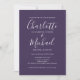 Com nomes no estilo de assinatura, este convite de casamento roxo elegante pode ser personalizado com todas as informações especiais do seu casamento na frente, detalhes do seu site de casamento e seu código QR no verso. Criado por Thisisnotme©