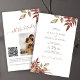 Folhas botânicas em aquarela rústica moderna e folhas secas criando um convite de casamento chic outono/outono econômico e acessível, tudo em um, com uma fonte de caligrafia manuscrita trendy e paleta de cores bege terracota terroso. ++++++++++ Fácil de personalizar com seus detalhes, foto e código QR para a página do seu site (gerado automaticamente com o endereço da sua URL).