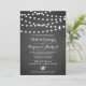 Convite de casamento divertido e caprichoso com luzes de fada brancas em fundo de lousa. Este é parte de uma suíte de casamento. itens correspondentes estão disponíveis.