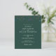Um convite de casamento de orçamento com um arco-íris colorido fica acima de seus detalhes especiais de convite para comemoração de casamento, em uma na moda elegante tipografia branca moderna em um fundo verde esmeralda. O reverso apresenta sua própria foto especial. Projetado por Thisnotme©