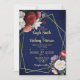 Rosa borgonha verde marinho azul de fundo ouro geométrico quadro geométrico modelo de convite para casamento floral com código QR RSVP no verso.