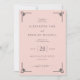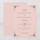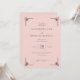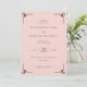 Este convite de casamento apresenta um layout simétrico com um fundo rosa suave, criando uma atmosfera elegante e calorosa. O design inclui motivos geométricos elegantes nos cantos que adicionam um toque de sofisticação sem sobrecarregar o texto central. Uma mistura de fontes script elegantes e serifadas clássicas destaca os nomes e detalhes do evento, garantindo legibilidade e um tom formal. Perfeito para casais que buscam uma estética minimalista, porém refinada, este convite prepara o cenário para uma celebração memorável.