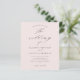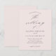 Um convite de casamento rosa blush simples e chique com detalhes de caligrafia em roteiro elegante e texto clássico. Clique no botão de edição para personalizar este design.