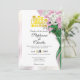 Este fundo rosa é acompanhado por um design simples em ouro, porém elegante e feito à mão, que diz "Você é Cordialmente Convidado" sem um contorno ao redor. Decorando a borda direita do fundo está minha ilustração suave e delicada de um vaso de vidro com rosas brancas e rosadas dentro dele. O convite é personalizado para que você digite suas informações pessoais. Todas as minhas obras de arte, que incluem fundos, arte de letras e bordas, são criadas com orgulho SEM IA e SEM arte de terceiros. Em outras palavras, cada item é 100% criado por mim – Christie Taylor.
