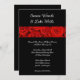 Este convite de casamento clássico romântico é mostrado em uma cor negra com rosas vermelhas adoráveis com layout formal escrito e texto em um roteiro destacando os nomes da Noiva e do Groom. O papel mostrado é o formato Personalizar este convite de casamento clicando no botão Personalizar, à direita para localizar as caixas de texto, altere o texto nas caixas apropriadas para adicionar suas informações.