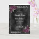 Convite de casamento sombriamente belo com a frase Até que a Morte Nos Separe, rosas roxas profundas e um fundo com padrão de diamante preto. Perfeito para um casamento gótico ou de Halloween.