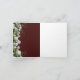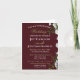 Este convite de casamento sofisticado ostenta um charmoso fundo vermelho escuro ladeado por rosas brancas e folhagens à direita e estendendo-se de cima a baixo, complementado pela mensagem do convite de casamento em letras brancas e douradas.