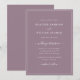 Convite de Casamento Roteiro Roxo. Faça do seu convite de casamento tão memorável quanto o seu dia especial com este design chique e sofisticado. Com um visual simples e minimalista com um toque clássico tradicional, este convite moderno apenas com texto apresenta uma caligrafia manuscrita com uma moldura de borda clássica em azul empoeirado e branco.