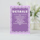 Cartão de Detalhes de Casamento Roxo Curva Ondulada Retro