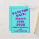 Convite de Casamento Roxo dos Anos 90 sobre Azul T