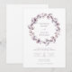 Convite de Casamento Roxo Elegante. Suave, sonhador e romântico, este convite de casamento elegante apresenta uma linda grinalda de folhas e flores em aquarela pintada à mão em tons monocromáticos de roxo, ameixa e tons suaves de rosa, com texto e caligrafia roxa combinando. O verso do convite é um branco minimalista. Encontre itens correspondentes na Coleção de Casamento Botânico Roxo Elegante.