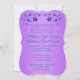 Este convite romântico e dramático para casamento em forma de colchete floral roxo e verde lacrimogêneo tem um IMPRESSO, um par de diamante IMPRESSO e brilho juntaram-se a corações de joias e tem um aspecto azul lacrimogêneo e flores roxas lilás iridescentes. ****POR FAVOR, OBSERVE que tudo será impressão como aparece no seu monitor; portanto, se você tiver problemas de digitação, alinhamento ou dimensionamento, entre em contato comigo para obter ajuda ANTES de solicitar. Não posso fazer nada quando o pedido for feito com Zazzle. Se precisar de outros itens correspondentes, envie um e-mail para niteowlstudio@gmail.com.