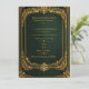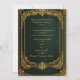Celebre com estilo real com este convite de casamento em verde esmeralda e dourado. Com uma moldura vintage ornamentada e tipografia elegante, este design personalizável é perfeito para casamentos de luxo, formais e glamorosos.
