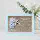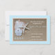 Este maravilhoso convite de casamento RSVP de praia mostra uma fotografia de uma concha, dólar e estrela de água em uma sobreposição bronzeada. A pá está cercada por uma borda azul branca, pêssego e maior. Você pode personalizar a data em que gostaria de receber sua resposta neste convite de casamento RSVP no azul de praia correspondente. Um belo convite para o casamento do RSVP de praia. Direitos autorais