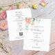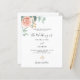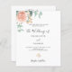 Um fundo branco elegante. Decorado com um floral rosa ouro e rosa bege, flor de rosa e folhas de eucalipto pintadas em aquarela verde, raminhos, folhagens e um ramo falso dourado. Personalize e adicione seus nomes e detalhes do casamento. Letras pretas e verdes.