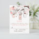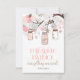 Ilustrações caprichosas de potes de pedra rosa e cordas de coração penduradas em uma árvore com dois pássaros apaixonados marrons cercados por uma variedade de flores rosa e marrons. É perfeito para casamentos de verão, primavera e ao ar livre.