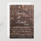 Este convite totalmente personalizável tem um tema rústico com fundo de madeira escuro, efeito de luz de cordas e uma variedade de fontes de caligrafia. Todo o texto é 100% personalizável, então você pode fazer seu próprio convite. Altere os nomes, mensagens, data, dia da semana, local - tudo. Torne-o único seu com este modelo fácil!