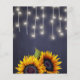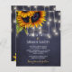 Elegante verão chic ou outono outono barato de de casamento modelo de na moda de convite para na noite escura meia noite marinho quadro azul com um belo buquê de girassóis e picadas verticais ou luzes cintilantes. +++++++++ Fácil de personalizar com seus detalhes de casamento e texto. +++++++ O convite é adequado para o elegante verão ou outono no país russo, jardim noturno no exterior, casamentos no quintal. +++++++++ LEIA ISTO ANTES DE COMPRAR! Este é um cartão de casamento de barato orçamentário impresso em uma folha de papel (cada folha tem um cartão). +++ Para obter a melhor qualidade de preço, nosso conselho é escolher o tipo de papel Semi-Gloss (é espesso o suficiente para ser usado para papelaria) +++ Se você precisar de envelopes, escolha a OPÇÃO ENVELOPE. ++ Verifique duas vezes todas as informações e a ortografia do seu texto porque você receberá exatamente o que você vê - ninguém mais verificará nada antes de imprimir. +++ Esta placa foi projetada para o tamanho de 4,5" x 5,6". Caso você escolha outro tamanho do cartão e o texto saia da página, tudo precisa ser corrigido antes de adicionar o produto ao carrinho. Peça ajuda ao Serviço de Design ao Vivo.