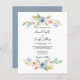 Este Convite para Casamento Floral Azul e Rosa Esbranquiçado é perfeito para primavera, verão ou casamento outono. Este convite apresenta flores românticas de aquarelas em azul empoeirado e cor-de-rosa pincelado com verde. Faça este convite seu, incluindo seus nomes e todos os detalhes do seu casamento.