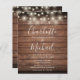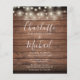 Um convite de casamento de orçamento na moda rústico com luzes bonito de cordas, nomes de estilo de assinatura e tipografia gráfica em um fundo de madeira rústica personalizado com todas as informações especiais do dia do casamento no verso, incluindo seu RSVP, acomodações e detalhes adicionais. Projetado por Thisnotme©