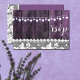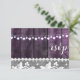 Casamento rústico com madeira, renda, corações de corda - cartão de confirmação de presença. Desenho por Alma Wad. Desenho da frente e verso. Todos os elementos são impressos. Esta versão vem em roxo e branco.