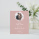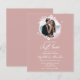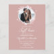 Um convite de casamento simples e elegante com monograma floral em falso foil cor-de-rosa. Fácil de personalizar com seus detalhes. Convite de casamento moderno boho editável, convite de casamento com foto e grinalda, personalizável, fonte manuscrita caligrafada, simples, elegante.