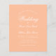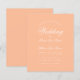 Um convite de casamento simples, minimalista e econômico. Possui apenas texto branco em fundo pêssego (uma cor moderna). A palavra Casamento e os nomes são escritos em uma fonte caligráfica elegante.