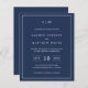 Convite de casamento simples e econômico com um design moderno e elegante com a sua monograma de duas letras no topo, um layout de data em negrito e seus detalhes cercados por uma fina borda. Todos os elementos de design são em branco sobre um fundo azul-marinho e podem ser alterados na ferramenta de edição de design. Um design sofisticado e elegante que é ótimo para um casal minimalista.