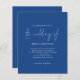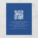 Uma alternativa de orçamento com bom custo-benefício em um tamanho menor 4,5 x 5,6” semi-brilho 110lbs de peso, que é de espessura semelhante a um cartão postal (no entanto, não é adequado para uso como cartão postal). POR FAVOR, OBSERVE que há UM convite por folha Convite de Casamento Simples Branco Azul Médio com Código QR. Adicione o seu código QR ao seu site de casamento no verso, o que torna esta uma opção conveniente para que seus convidados respondam e vejam todos os detalhes sem a necessidade de cartões separados de RSVP e detalhes. Seu código QR será gerado automaticamente para atualizar o código de exemplo no design, quando você simplesmente alterar a URL de exemplo no modelo com a URL do seu próprio site de casamento. Uma tipografia elegante em branco para o título principal O Casamento complementa o resto do texto que você pode personalizar facilmente.