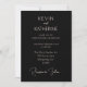 Este é um cartão de convite de casamento clássico preto e rosa empoeirado. Este design apresenta fonte de escrita rosa empoeirado em fundo preto. Perfeito para casais que estão planejando um casamento minimalista simples!