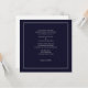 Convite Simples de Casamento Azul Escuro com escrevendo e quadrados duplos, este convite pode ser usado para qualquer ocasião especial. Este convite está disponível em Ivory, White & Dark Blue *Nota - Marca d'água PS no verso, facilmente removível.
