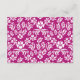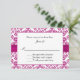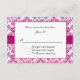 Convite de casamento floral elegante, com padrão damasco de lírio branco e rosa violeta, gráficos de fita de cetim rosa violeta sob área de texto branca com moldura rosa. Texto preto pronto para personalizar para o seu dia especial. Produtos combinando disponíveis.