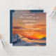 Um convite de casamento artístico com um pôr do sol sobre montanhas cobertas de neve. Belo para um casamento na montanha ou um casamento de inverno.