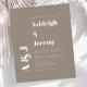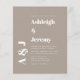 Este convite de casamento simples e moderno apresenta texto branco minimalista em um fundo taupe. Adicione os nomes e iniciais do monograma da noiva e do noivo em tipografia negrito estilosa e os detalhes em fonte sans serif. O verso é uma tonalidade correspondente de taupe sólido. NOTA: Os envelopes não são incluídos automaticamente com esses convites econômicos, então lembre-se de escolher a opção "envelopes brancos"!