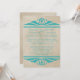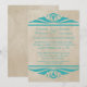 Na moda e chic Elegant Deco Wedding Invitation apresentando um par de espiral de arte deco floresce em turquesa e uma imagem de fundo texturizada em um bege suave. Este convite tem encanto rústico enquanto mantém um belo talento sofisticado. Absolutamente perfeito para o casamento temático vintage de 1920. Fácil de personalizar, basta adicionar os detalhes do casamento nos campos de texto fornecidos. Clique em "Personalizar" para encontrar mais opções de personalização, como alterar fontes ou cores de texto.