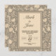 É um convite de casamento projetado de forma fofa com padrões de flores e folhas.