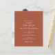 Um convite de casamento econômico com confetes de arco-íris coloridos fica acima dos detalhes do seu convite de celebração de casamento especial, definido em tipografia branca moderna e elegante em um fundo de terracota. O verso apresenta sua própria foto especial. Criado por Thisisnotme