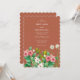 Um lindo desenho de casamento de aguarela com flores silvestres e pervinca. Um design único que usa floral botânico rústico vintage. Um elegante design floral retrô terracota laranja queimada com um toque de verde. Um convite de casamento com flores silvestres e pervinca com elementos modernos. Itens de papelaria de casamento combinando e outros formatos de convite de casamento também estão disponíveis.