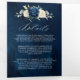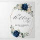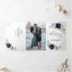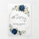 Marinho escuro azul floral triplo Convite para casamento com RSVP e cartão de detalhes com buquê elegante de azul marinho, azul real, branco, ouro, marfim de champanhe, rosa de cor de blush, hydrangea, ranunculus, pénia, botões de flor e folhas de eucalipto verde de sábio e elegante aquarela com uma imagem geométrica neutra arredondada. Entre em contato comigo para obter ajuda sobre a personalização ou se você precisar de outro produto com este design